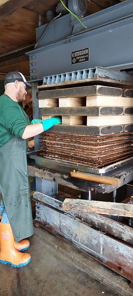die die Äpfel zuerst waschen, zerkleinern und dann pressen.
