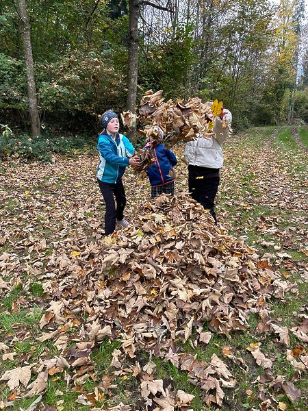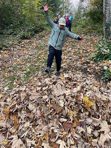 Die Kinder bauten Laubhaufen, spielten Ballspiele und